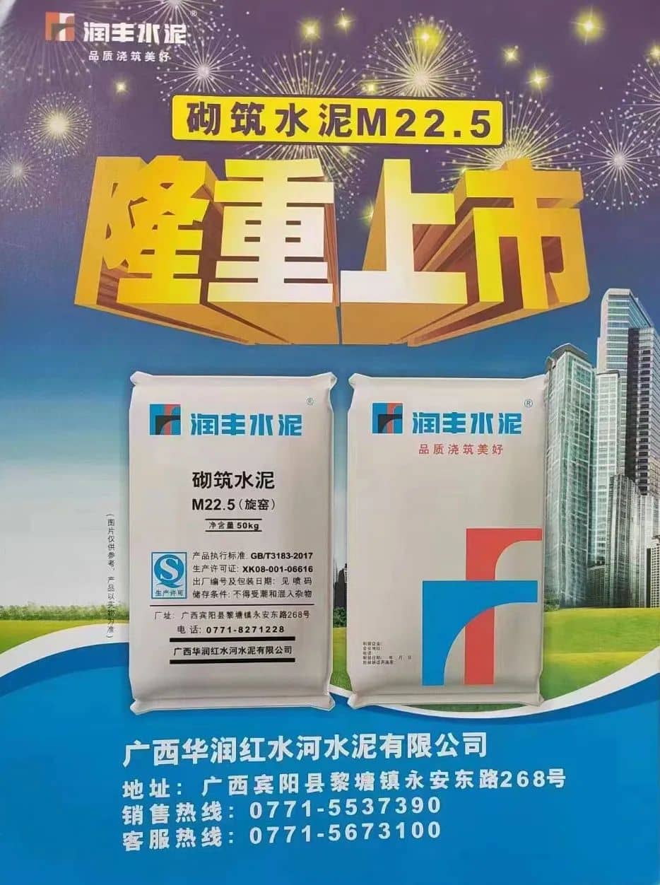 水泥人網(wǎng)通訊員消息,日前廣西華潤紅水河水泥有限公司潤豐品牌砌筑水泥M22.5 隆重上市 。