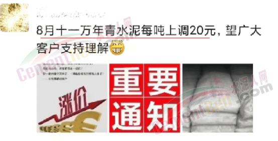 萬年青水泥通知,自8月11日起,上調(diào)20元/噸。