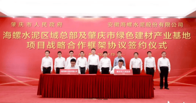 2021年7月13日,肇慶市與安徽海螺水泥股份有限公司簽訂海螺水泥區(qū)域總部及肇慶市綠色建材產(chǎn)業(yè)基地項(xiàng)目戰(zhàn)略合作框架協(xié)議,雙方將在綠色建材產(chǎn)然后業(yè)等領(lǐng)域開展全面深化合作,共同打造國(guó)內(nèi)一流的新型建材領(lǐng)域科技創(chuàng)新和產(chǎn)業(yè)發(fā)展平臺(tái)。