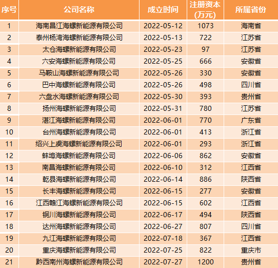 2018年-2021年,海螺新能源獨(dú)立出資設(shè)立了44家新能源公司。海螺新能源主營業(yè)務(wù)包括光伏發(fā)電、風(fēng)力發(fā)電、儲(chǔ)能系統(tǒng)領(lǐng)域內(nèi)的技術(shù)開發(fā)、技術(shù)服務(wù),電力項(xiàng)目的建設(shè)、運(yùn)營和管理等。