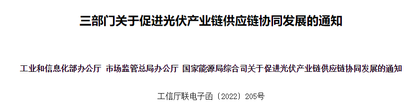 24日,工信部、國(guó)家能源局等三部門關(guān)于促進(jìn)光伏產(chǎn)業(yè)鏈供應(yīng)鏈協(xié)同發(fā)展的通知。通知指出,近期,光伏行業(yè)出現(xiàn)階段性供需錯(cuò)配、部分供應(yīng)鏈價(jià)格劇烈震蕩等情況,個(gè)別環(huán)節(jié)出現(xiàn)囤積居奇等苗頭,有的地方出現(xiàn)割裂市場(chǎng)、區(qū)域封閉等問題,亟需深化行業(yè)管理,引導(dǎo)產(chǎn)業(yè)鏈供應(yīng)鏈協(xié)同創(chuàng)新。