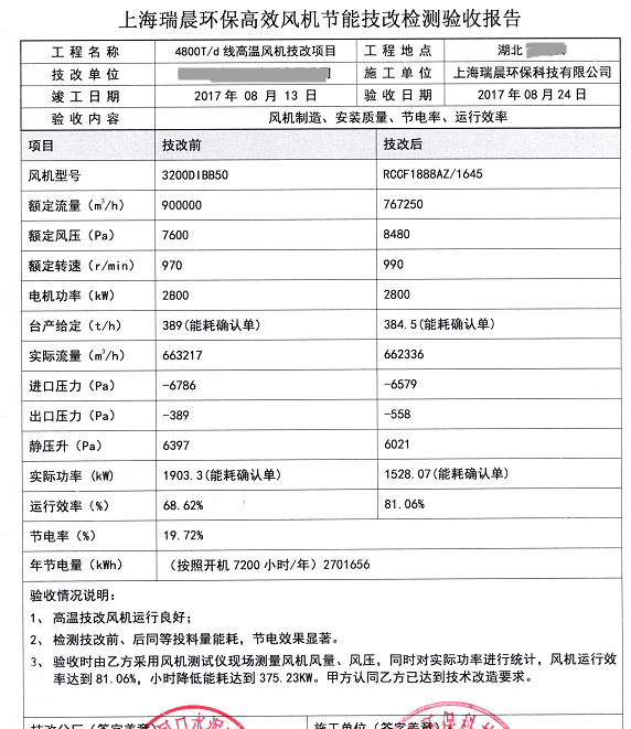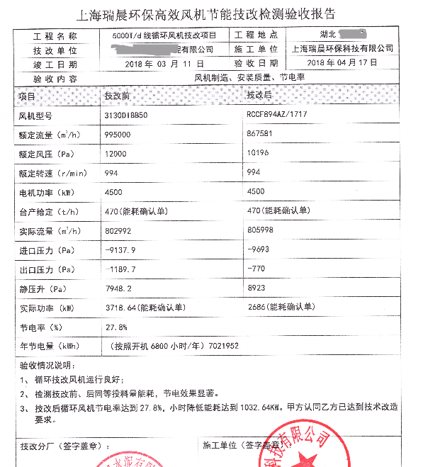 表2 循環(huán)風(fēng)機(jī)改造前后對和技改驗收報告