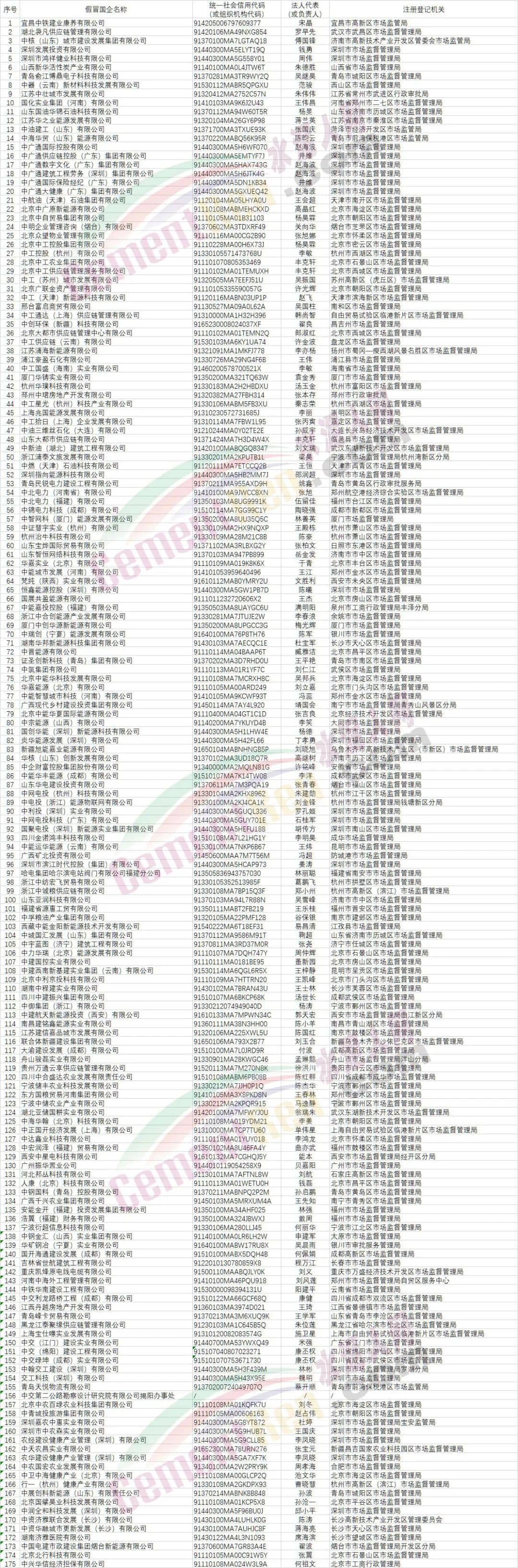 中央企業(yè)公告的假冒國企名單匯總(第二批)