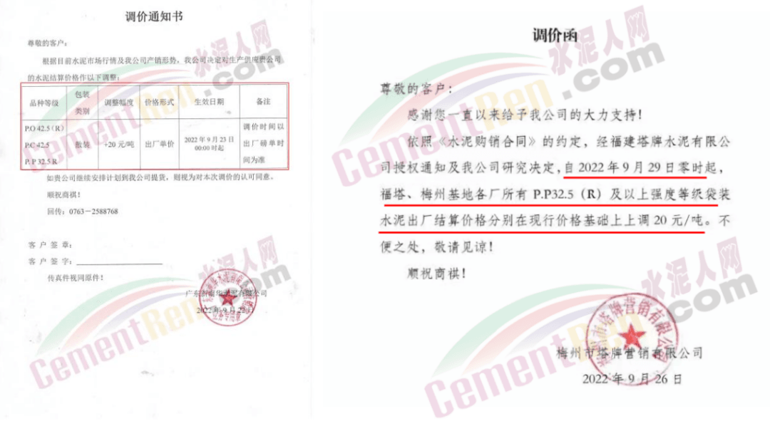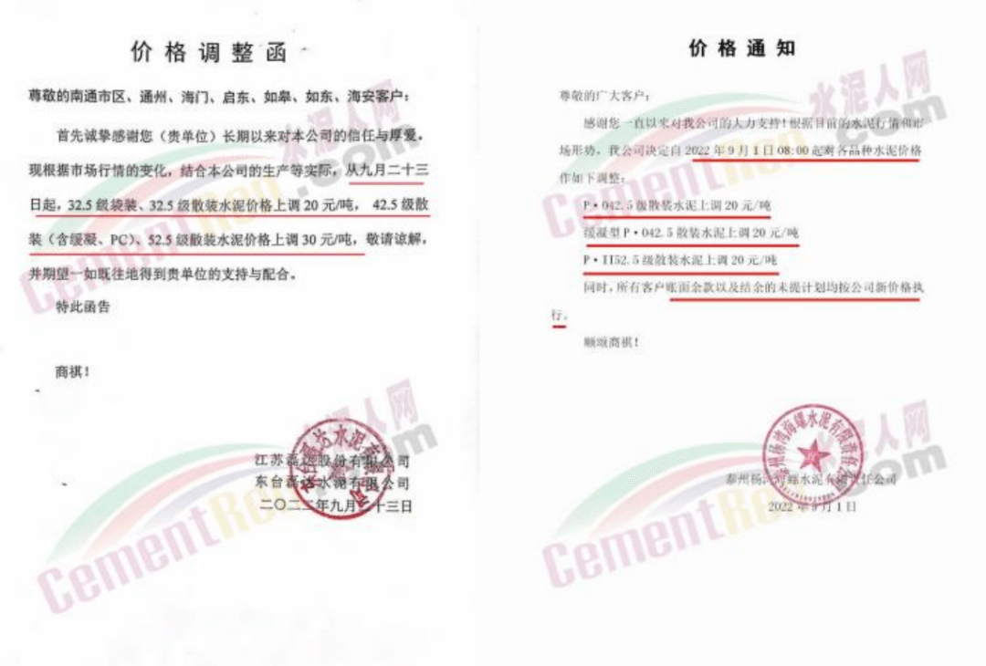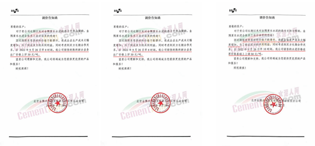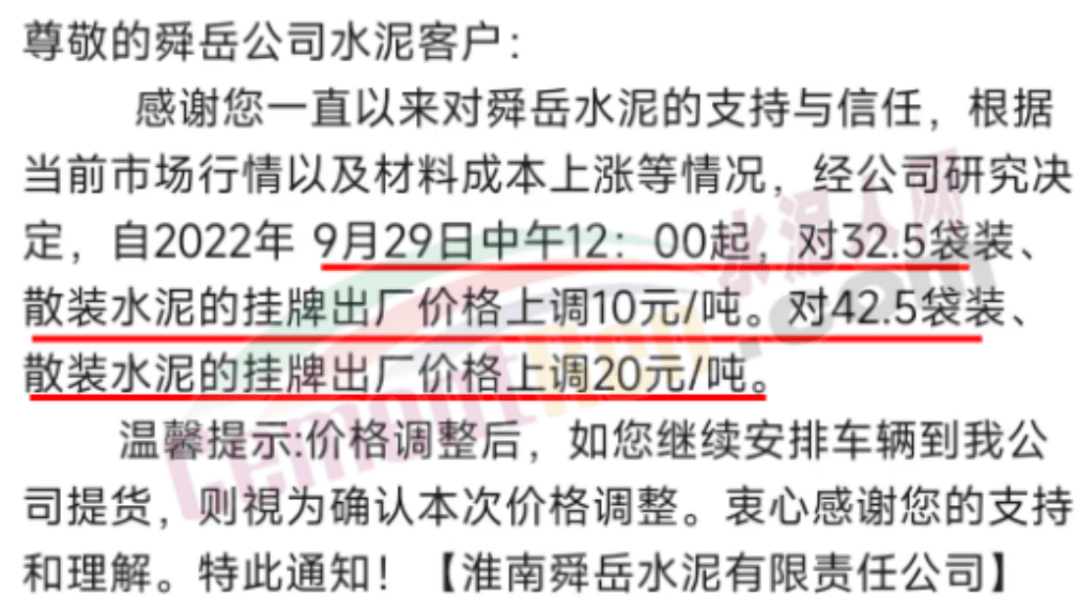 水泥人網(wǎng)通訊員消息:日前,廣東佛山市南海建源混凝土有限公司、佛山市南海區(qū)泌沖水泥混凝土有限公司等企業(yè)通知,鑒于近期水泥、碎石、河砂等原材料價(jià)格的持續(xù)上漲,造成混凝土生產(chǎn)成本大幅攀升。經(jīng)公司研究決定,自2022年10月3日零時(shí)起,商品混凝土和預(yù)拌砂漿價(jià)格上調(diào)30元/方,其他標(biāo)號以此類推,同時(shí)按新價(jià)格結(jié)算。