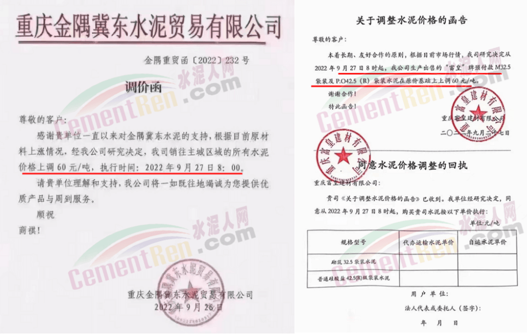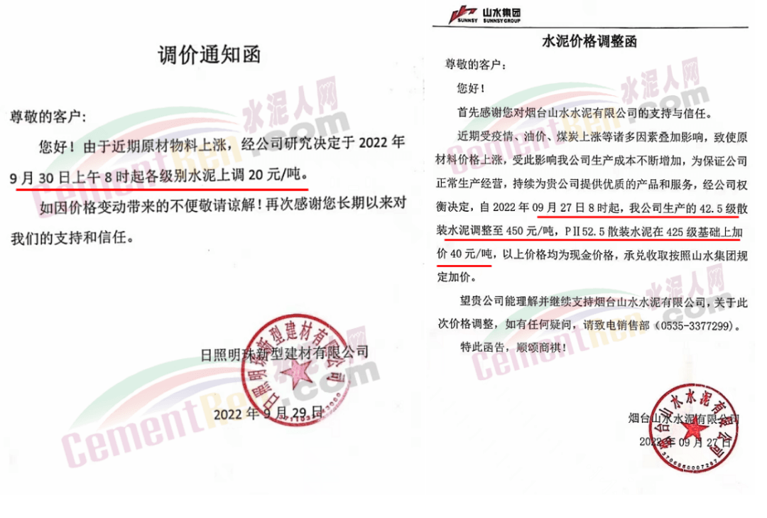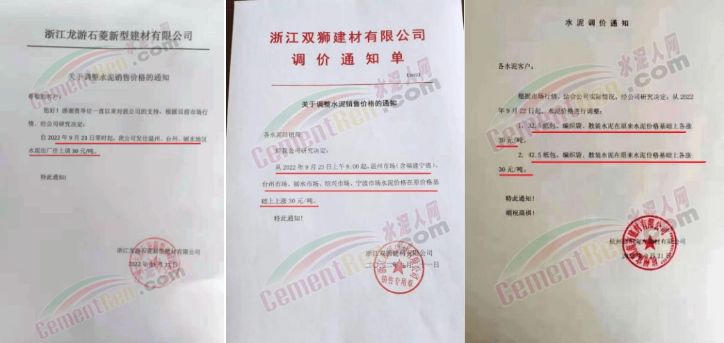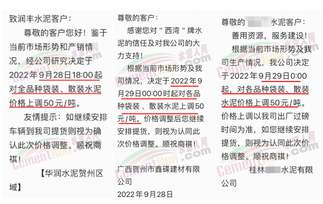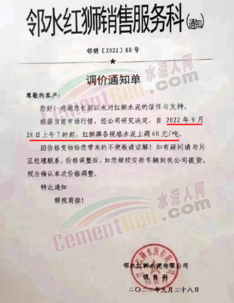 湖北武漢、荊門以及十堰等主要品牌企業(yè)通知,9月25日起上調(diào)水泥價(jià)格30-50元/噸左右,