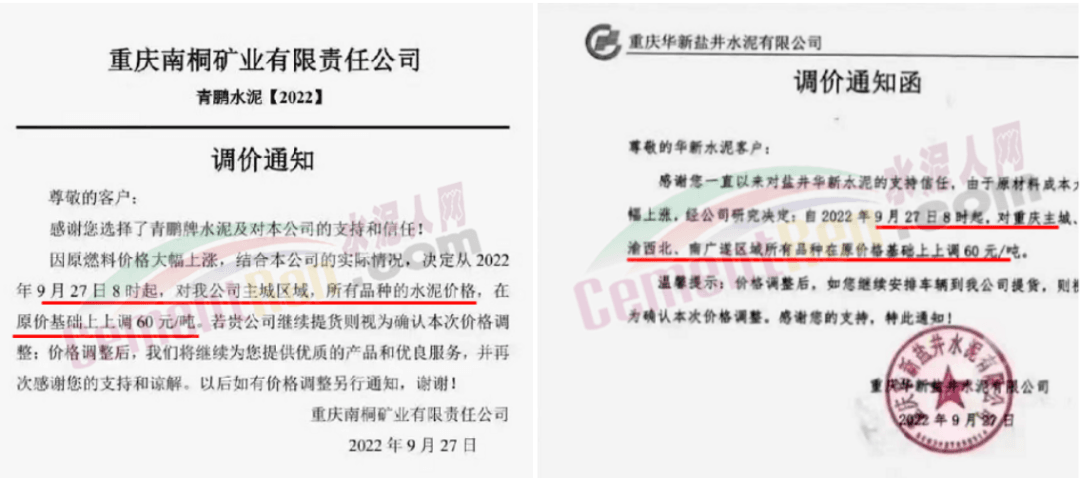 重慶主要品牌企業(yè)自9月27日起漲60元/噸。