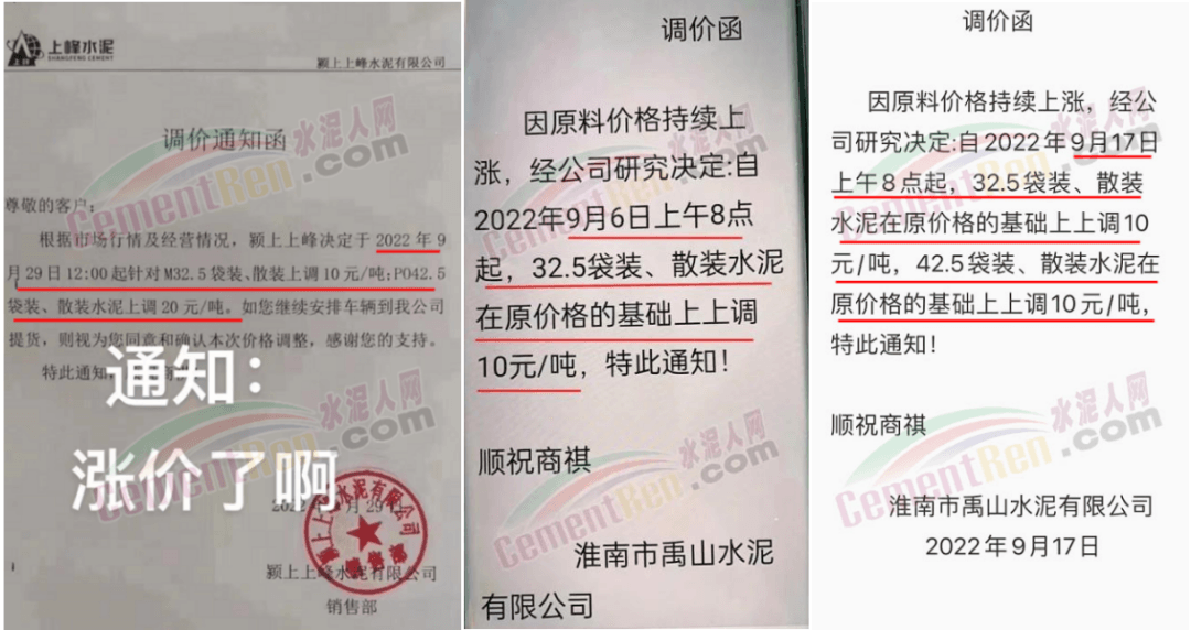 正如上述協(xié)會(huì)文件中所講,水泥價(jià)格自8月下旬開始回暖,在9月份正式進(jìn)入上行通道,到9月中下旬出現(xiàn)多區(qū)域普漲行情 ,個(gè)別省市自治區(qū)連續(xù)幾次上調(diào)價(jià)格,累計(jì)調(diào)價(jià)超100元/噸。