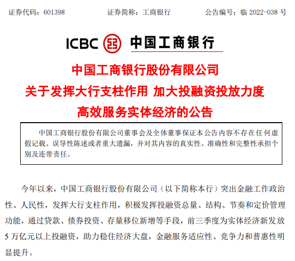 16日晚間,工、農(nóng)、中、建、交五大國(guó)有銀行均發(fā)布公告,表示加強(qiáng)對(duì)實(shí)體經(jīng)濟(jì)的支持力度。
