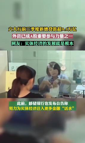 相關(guān)數(shù)據(jù)顯示,工、農(nóng)、中、建、交、郵儲(chǔ)六大行前三季度新增貸款超9.5萬(wàn)億。