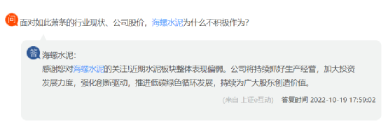 日前,有投資者向海螺水泥提問,面對如此蕭條的行業(yè)現(xiàn)狀、公司股價,海螺水泥為什么不積極作為?