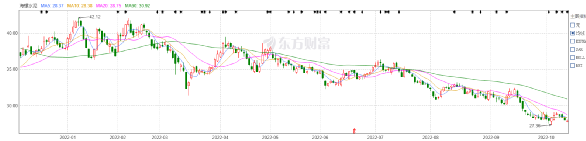 2022年內(nèi)最高值(2022年1月10日盤中最高價44.5元)到2022年10月20日開盤27.8元市值下跌了884.98億元。較2020年7月31日盤中最高63.5元,市值更是下跌了1895.03億元。