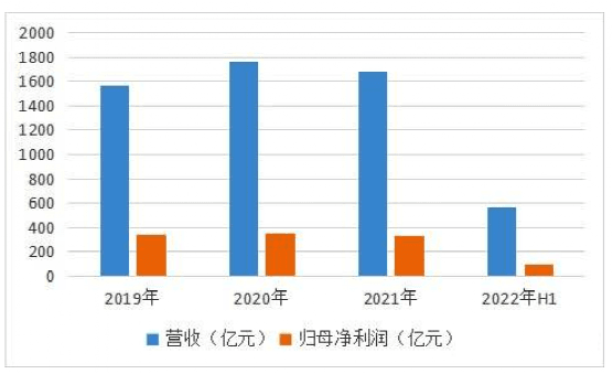 業(yè)績方面,2021年財報顯示,海螺水泥實(shí)現(xiàn)營收1680億元,同比下降4.73%;實(shí)現(xiàn)凈利潤332.7億元,同比下降5.38%,營收、凈利雙雙下降,并創(chuàng)下6年內(nèi)首次業(yè)績雙降紀(jì)錄。從近期企業(yè)發(fā)布的2022年中報來年,公司業(yè)績?nèi)晕粗棺∠碌j勢。