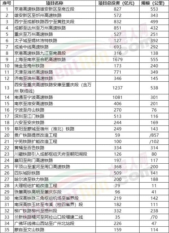 四季度計(jì)劃開(kāi)工鐵路項(xiàng)目35個(gè),總投資14935億。