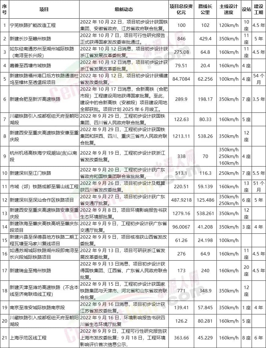 近期獲批鐵路項(xiàng)目,共21項(xiàng)