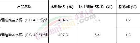 2022年10月下旬流通領(lǐng)域重要生產(chǎn)資料市場(chǎng)價(jià)格變動(dòng)情況顯示,普通硅酸鹽水泥(P.O 42.5袋裝)報(bào)價(jià)434.5元/噸,上漲5.3元/噸;普通硅酸鹽水泥(P.O 42.5散裝)407.3元/噸,上漲5.4元/噸,漲幅1.2%~1.3%,水泥價(jià)格已突破400元/噸大關(guān)。