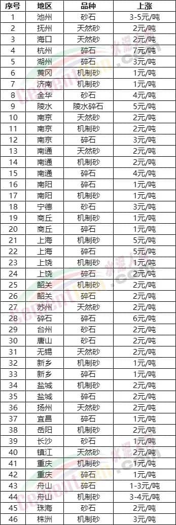 近期砂石價(jià)格上漲情況