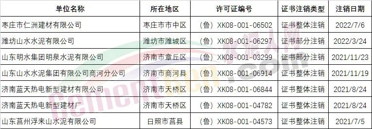 近來,山東、山西、浙江、河北、河南、湖南、內(nèi)蒙古、寧夏、青海等多個省市自治區(qū)公布注銷水泥生產(chǎn)許可證名單。