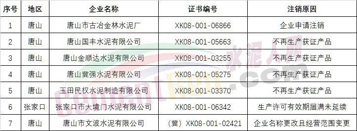 青海省注銷5家水泥企業(yè)生產(chǎn)許可證,其中一家許可證有效期屆滿未延續(xù),4家換發(fā)省級證書原證書注銷;