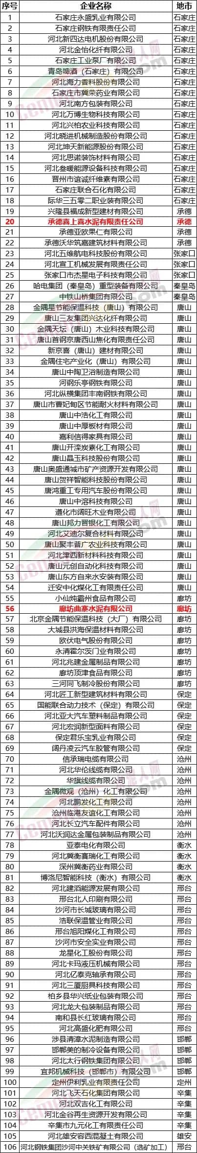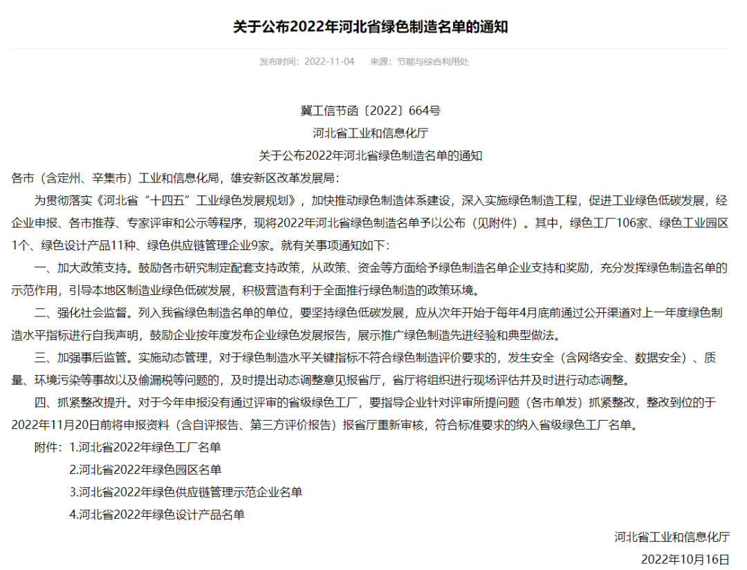2022年河北省綠色工廠名單