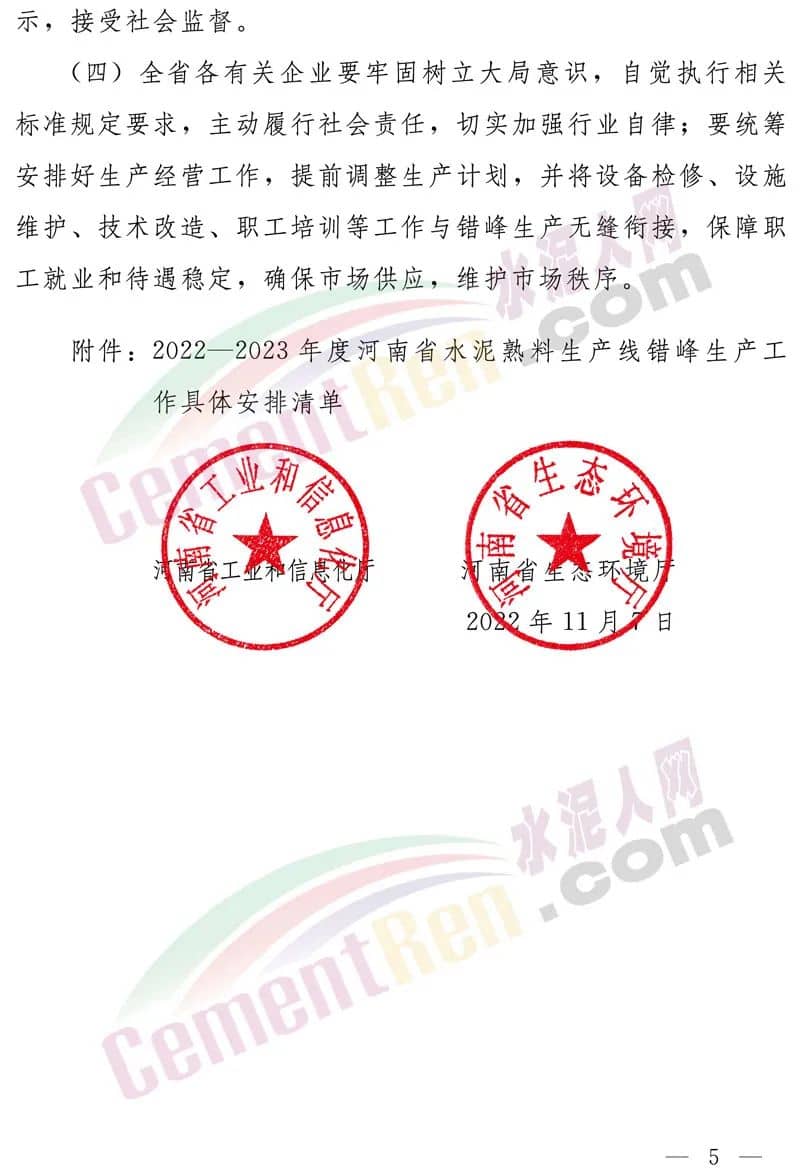 日前,河南工信廳、生態(tài)環(huán)境廳聯(lián)合發(fā)布《關于實施2022—2023年度全省水泥行業(yè)錯峰生產工作的通知》要求河南省內所有水泥熟料生產線(不含水泥粉磨工序和粉磨站)自2022年11月15日至2023年3月15日采暖期期間,實施錯峰停產。