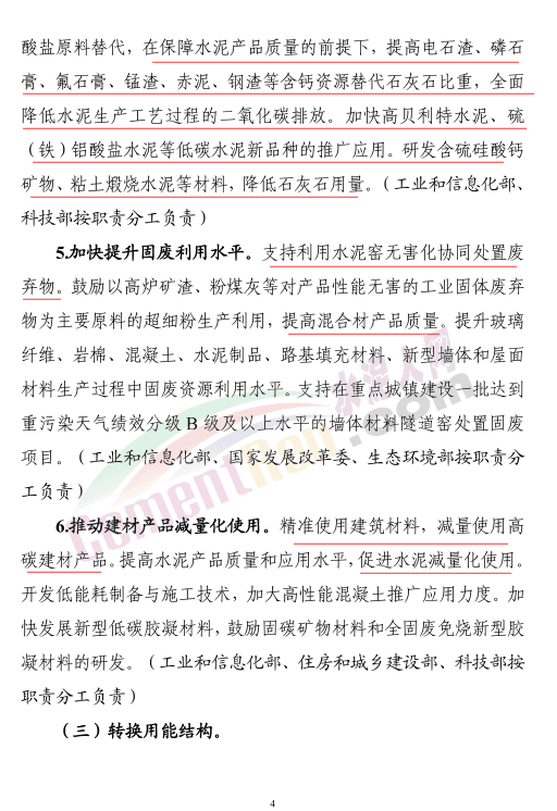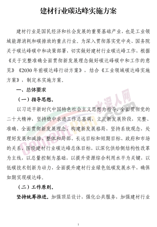 工業(yè)和信息化部、國家發(fā)展和改革委員會、生態(tài)環(huán)境部、住房和城鄉(xiāng)建設(shè)部等四部門聯(lián)合印發(fā)《建材行業(yè)碳達峰實施方案》,方案提出“十四五”期間,建材產(chǎn)業(yè)結(jié)構(gòu)調(diào)整取得明顯進展,行業(yè)節(jié)能低碳技術(shù)持續(xù)推廣,水泥、玻璃、陶瓷等重點產(chǎn)品單位能耗、碳排放強度不斷下降,水泥熟料單位產(chǎn)品綜合能耗水平降低3%以上。“十五五”期間,建材行業(yè)綠色低碳關(guān)鍵技術(shù)產(chǎn)業(yè)化實現(xiàn)重大突破,原燃料替代水平大幅提高,基本建立綠色低碳循環(huán)發(fā)展的產(chǎn)業(yè)體系。確保2030年前建材行業(yè)實現(xiàn)碳達峰。