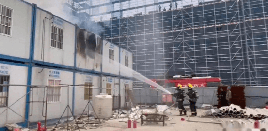 2022年3月6日,常州,一處工地宿舍起火,工人及時(shí)逃離。消防員趕到后發(fā)現(xiàn),現(xiàn)場是一排兩層彩鋼瓦結(jié)構(gòu)的簡易宿舍樓,彩鋼瓦在高溫的炙烤下已經(jīng)發(fā)生變形,消防員一邊撲救,一邊大喊房子里的人撤離。