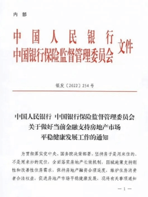 11月13日,一份由央行和銀保監(jiān)會(huì)聯(lián)合發(fā)布的《關(guān)于做好當(dāng)前金融支持房地產(chǎn)市場(chǎng)平穩(wěn)健康發(fā)展工作的通知》(銀發(fā)〔2022〕254號(hào))(下稱“254號(hào)文”)引發(fā)強(qiáng)烈關(guān)注。