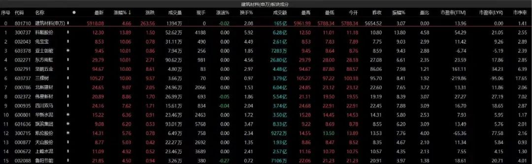 當(dāng)日水泥建材等板塊相關(guān)等成分股出現(xiàn)不同程度上漲,逆市交出亮眼成績(jī)單。