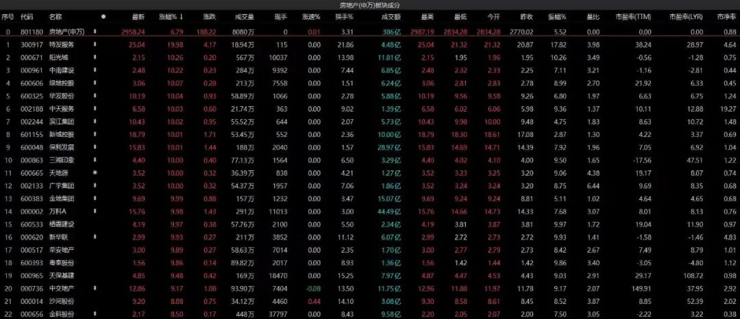從近期股市行情來看,全球股市、港股地產(chǎn)股“暴漲”帶動(dòng)A股市場(chǎng)地產(chǎn)及相關(guān)產(chǎn)業(yè)鏈股市集體“飄紅”。
