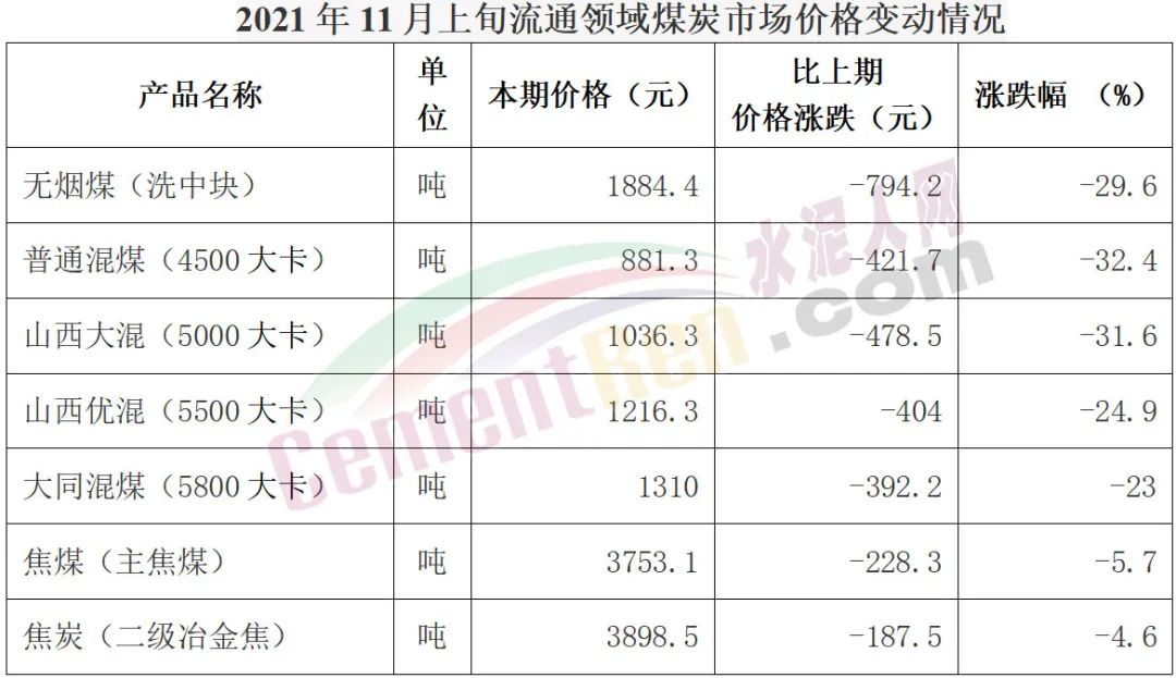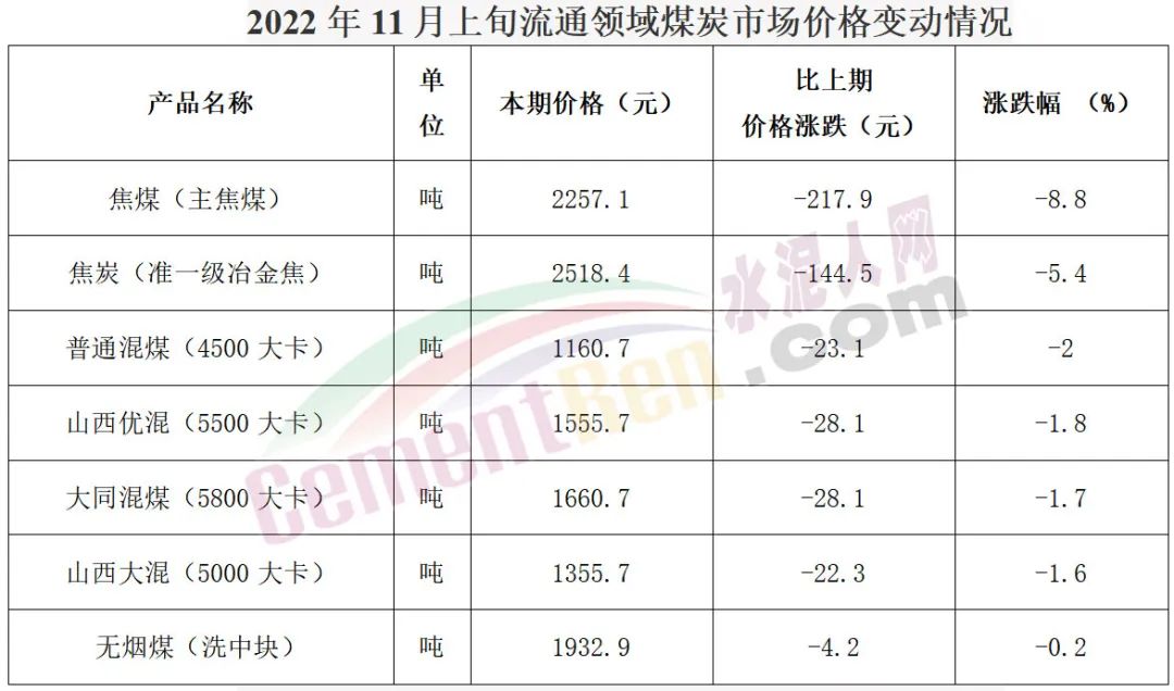 國家統(tǒng)計局11月14日公布的數據顯示,11月上旬全國動力煤價格整體下跌。普通混煤(4500大卡)報1160.7元/噸,下跌23.1元/噸,較10月下旬下跌2%;
