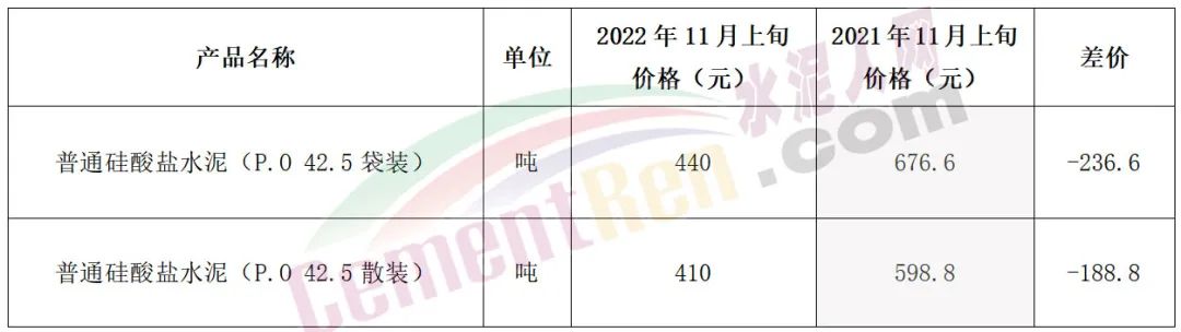煤價持續(xù)高位導致水泥生產企業(yè)成本持續(xù)增長,利潤大幅收窄。無奈今年前幾個月水泥價格持續(xù)下跌,以至于多區(qū)域長期磨底。國家統(tǒng)計局數據顯示,截至11月上旬P.O42.5散裝水泥報價剛剛突破400元/噸。較上年同期相差188.8元/噸,P.O 42.5袋裝水泥相差236.6元/噸。