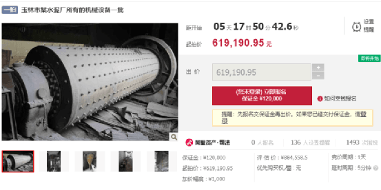 廣西壯族自治區(qū)興業(yè)縣人民法院發(fā)布《拍賣公告》稱,將于2022年11月20日10時(shí)至2022年11月21日10時(shí)在淘寶網(wǎng)司法拍賣網(wǎng)絡(luò)平臺(tái)上對玉林市某水泥廠所有的機(jī)械設(shè)備一批,進(jìn)行公開拍賣。