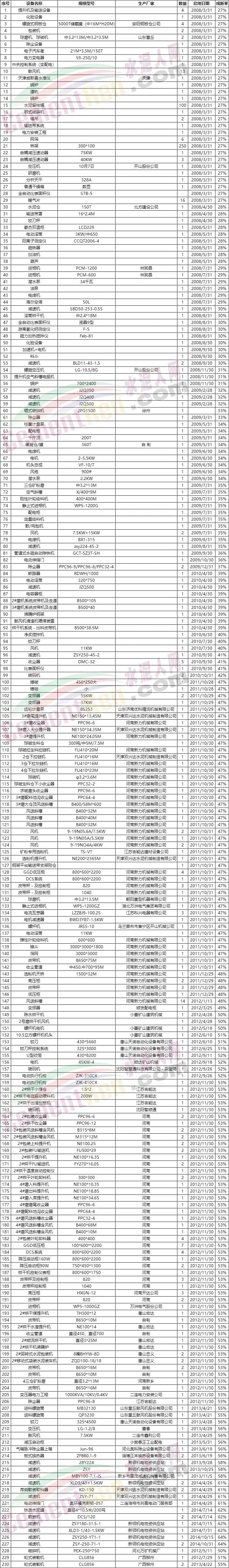 水泥人網(wǎng)注意到公告文件固定資產(chǎn)—機(jī)器設(shè)備評(píng)估明細(xì)表中包含水泥生產(chǎn)用球磨機(jī)、碎碎機(jī)、減速機(jī)、提升機(jī)、拉鏈機(jī)、收塵器、風(fēng)機(jī)、選粉機(jī)、皮帶機(jī)、烘干機(jī)、皮帶秤等230件設(shè)備。