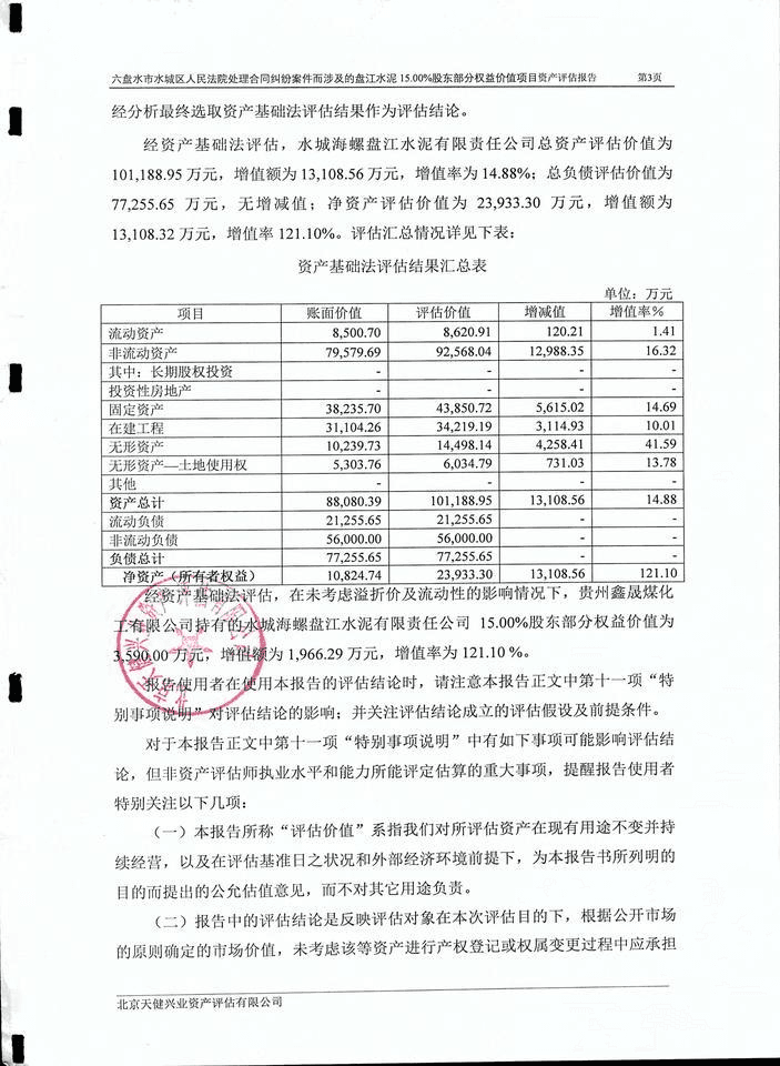 6 水城海螺盤江水泥有限責(zé)任公司15%股權(quán)