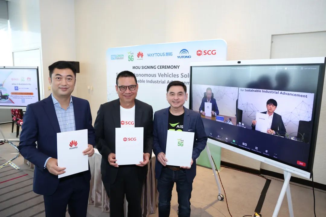 日前,泰國(guó)首個(gè)5G+自動(dòng)駕駛智慧綠色礦山項(xiàng)目意向合作協(xié)議簽約儀式在泰國(guó)曼谷隆重舉行,泰國(guó)暹羅水泥集團(tuán)、泰國(guó)AIS 公共有限責(zé)任公司、泰國(guó)華為運(yùn)營(yíng)商、青島慧拓智能機(jī)器有限公司及鄭州宇通礦用裝備有限公司的代表共同簽署項(xiàng)目意向合作協(xié)議,國(guó)際歐亞科學(xué)院院士、中科院曼谷創(chuàng)新合作中心主任姜標(biāo)應(yīng)邀出席儀式并見(jiàn)證簽約。