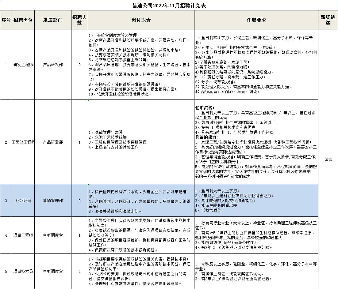 湖南昌迪環(huán)境科技有限公司2022年11月招聘計(jì)劃表