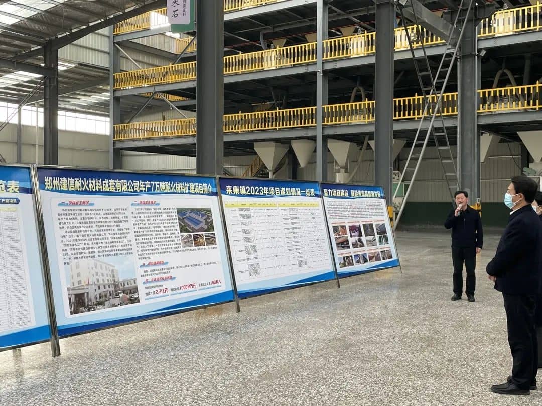 12月7日下午,新密市委書(shū)記陳春梅,新密市委副書(shū)記、市長(zhǎng)程洋,帶領(lǐng)四大班子領(lǐng)導(dǎo)以及各局委鎮(zhèn)辦主要領(lǐng)導(dǎo)蒞臨公司實(shí)地觀摩新建年產(chǎn)7萬(wàn)噸澆注料及預(yù)制件生產(chǎn)線項(xiàng)目。公司董事長(zhǎng)慕松坡、總經(jīng)理曾魯舉、副總經(jīng)理慕懷東熱情接待并陪同參觀。