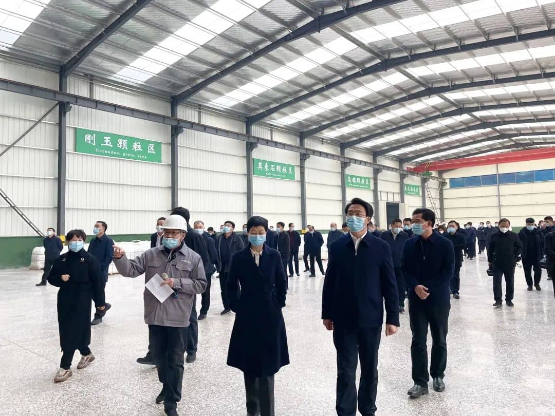 隨后,陳書(shū)記、程市長(zhǎng)一行深入澆注料、預(yù)制件及98米中溫隧道窯生產(chǎn)車(chē)間觀摩,詳細(xì)聽(tīng)取了公司董事長(zhǎng)慕松坡關(guān)于新建項(xiàng)目建設(shè)規(guī)劃設(shè)計(jì)和配套設(shè)施情況介紹后,對(duì)我公司積極引進(jìn)先進(jìn)工藝技術(shù)、推動(dòng)節(jié)能環(huán)保、綠色發(fā)展所做的工作和取得的成績(jī)給予了高度肯定,希望我公司立足長(zhǎng)遠(yuǎn)發(fā)展,繼續(xù)堅(jiān)持和發(fā)揚(yáng)企業(yè)優(yōu)良作風(fēng),堅(jiān)決貫徹落實(shí)環(huán)保要求,扎實(shí)推進(jìn)項(xiàng)目建設(shè),不遺余力將企業(yè)打造成綠色發(fā)展耐材示范企業(yè)。