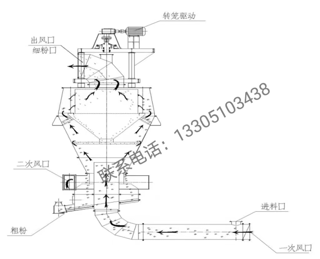 該選粉機(jī)突破了原有超細(xì)分級(jí)機(jī)生產(chǎn)能力小、選粉效率低,比表面積難于提高、微細(xì)粉宜團(tuán)聚難于分散等多項(xiàng)技術(shù)瓶頸,解決了超細(xì)分級(jí)設(shè)備無法實(shí)現(xiàn)大規(guī)模分選超細(xì)微粉的關(guān)鍵技術(shù)難題。該選粉機(jī)分級(jí)精度準(zhǔn),選粉效率高,選粉效率平均值達(dá)到80.6%。在高選粉效率的情況下,保證適中的循環(huán)負(fù)荷(120%),以保證物料在超細(xì)球磨機(jī)內(nèi)能夠得到充分的研磨,可根據(jù)用戶需要生產(chǎn)比表在700~1000m2/kg的超細(xì)微粉。