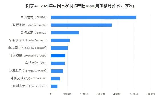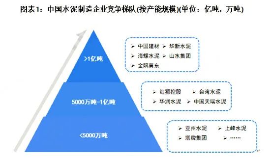 各大龍頭企業(yè)按年產(chǎn)能劃分,可分為3個競爭梯隊。其中,年產(chǎn)能大于1億噸的企業(yè)有中國建材 、海螺水泥、華新水泥、山水水泥、金隅冀東;年產(chǎn)能在5000萬噸至1億噸之間的企業(yè)有紅獅、臺泥、華潤、天瑞等,其余企業(yè)的年產(chǎn)能多在5000萬噸以下。其中中國建材、海螺水泥、金隅冀東三大龍頭占據(jù)了水泥行業(yè)總產(chǎn)能的37.69%,產(chǎn)能排名前十的企業(yè)合計占比達(dá)57%。且絕大多數(shù)都有在利用并購重組等方式增強自身競爭力。