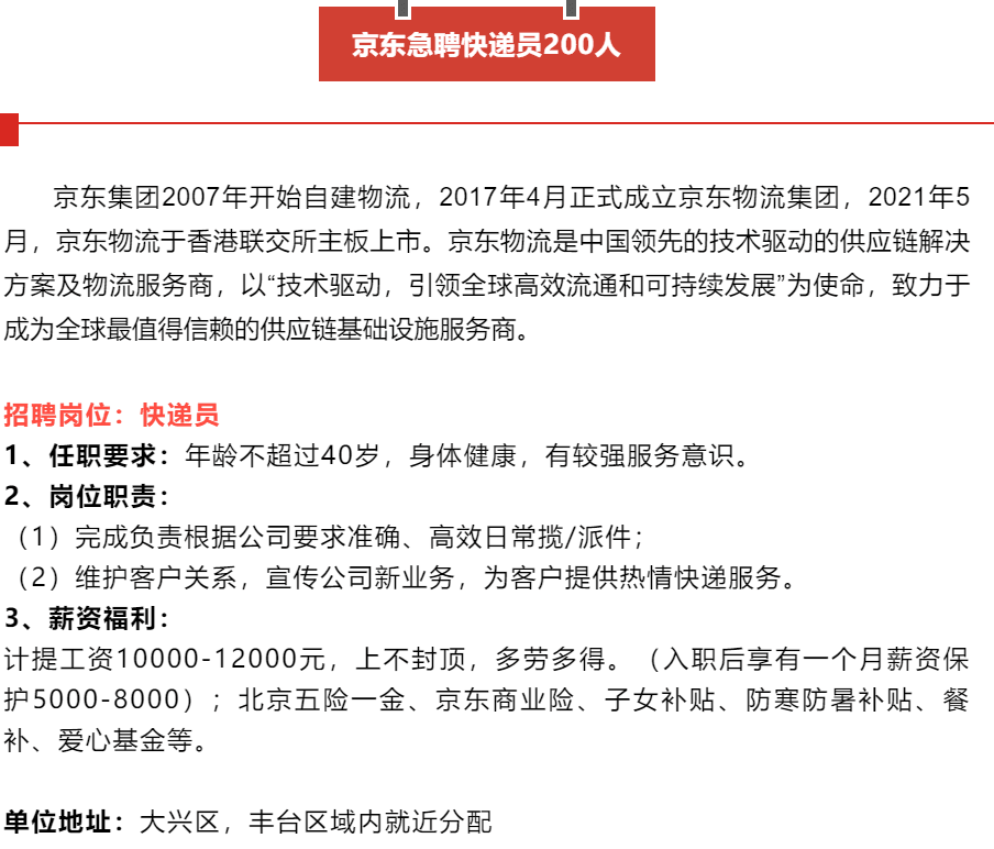 為解決北京“末端投遞”的問(wèn)題,京東物流在12月14日下午從全國(guó)調(diào)集的首批1000余名快遞小哥已陸續(xù)抵達(dá)北京,定向增援北京市內(nèi)的快遞配送等工作。他們于15日起陸續(xù)投入到北京全市的快遞配送工作中,后續(xù)還將有數(shù)百名小哥在本周內(nèi)抵京。