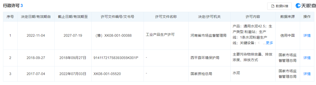 現(xiàn)場(chǎng)發(fā)現(xiàn)的水泥外包裝所標(biāo)稱的生產(chǎn)許可證編號(hào)XK08-001-05520對(duì)應(yīng)生產(chǎn)廠家為西平縣柏國(guó)水泥粉磨有限公司,該編號(hào)已于2022年7月3日到期。西平縣柏國(guó)水泥粉磨有限公司新申領(lǐng)的生產(chǎn)許可證編號(hào)為(豫)XK08-001-00088。