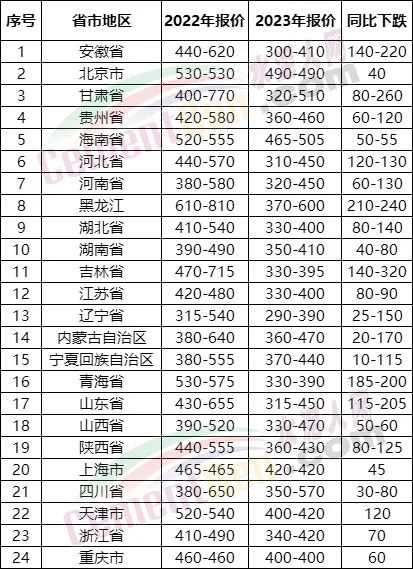 同比上年同期24個(gè)省市地區(qū)跌價(jià),最高跌350元/噸