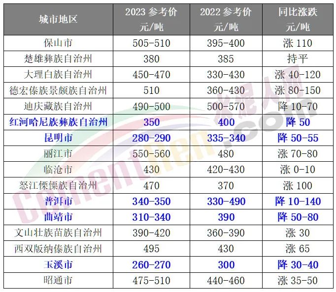 據(jù)云南昆明區(qū)域企業(yè)反饋,個(gè)別企業(yè)上個(gè)月中旬左右剛剛下調(diào)了60元/噸,報(bào)價(jià)175-185元/噸左右,又于2月下旬以及3月初兩次上調(diào)了近100元/噸,目前的執(zhí)行價(jià)格仍不足300元/噸。