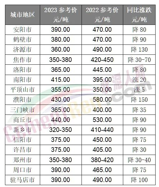 河南區(qū)域16個(gè)城市地區(qū),僅南陽和平頂山市水泥價(jià)格較上年同期小幅上漲。其他14個(gè)區(qū)域均有不同幅度的下跌。其中濮陽市上年同期報(bào)價(jià)在580元/噸,今年3月初報(bào)價(jià)430元/噸左右,下跌達(dá)150元/噸,濟(jì)源市價(jià)格下跌130元/噸。新鄉(xiāng)區(qū)域下跌90元/噸,鄭州區(qū)域下跌30-40元/噸。