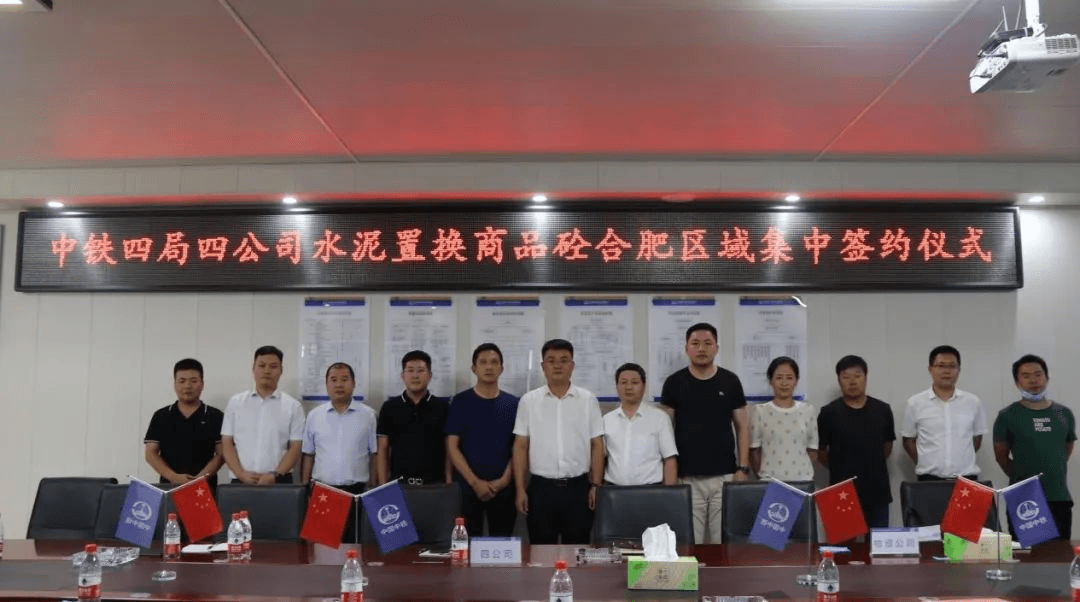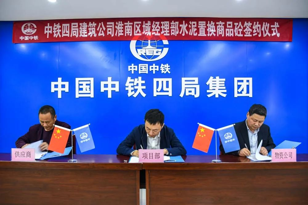 ▲中鐵四局建筑公司淮南區(qū)域經(jīng)理部水泥置換商品砼簽約儀式