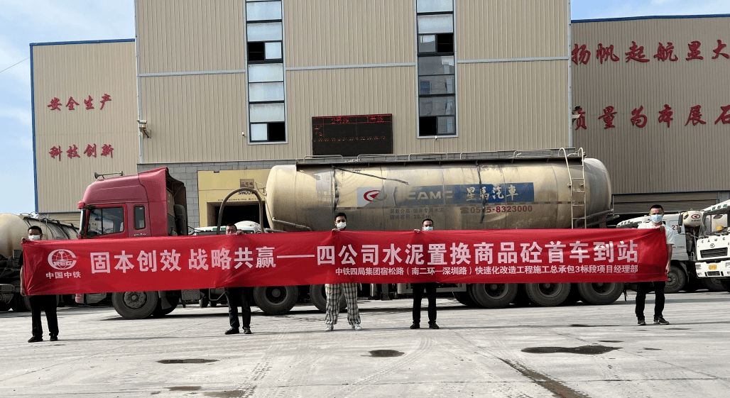 ▲四公司水泥置換商品砼首車到站