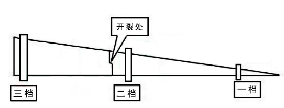 涉案回轉窯中線檢測未發(fā)現(xiàn)有大的異常,排除由于中心線不直導致筒體長期三檔受力不均勻出現(xiàn)開裂;