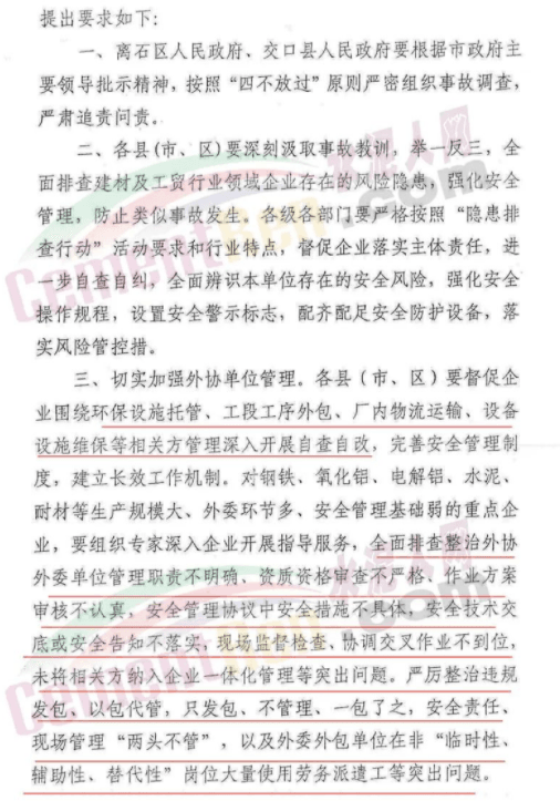 通報(bào)要求各縣(市、區(qū))要督促企業(yè)圍繞環(huán)保設(shè)施托管、工段工序外包、廠內(nèi)物流運(yùn)輸、設(shè)備設(shè)施維保等相關(guān)方管理深入開(kāi)展自查自改,完善安全管理制度,建立長(zhǎng)效工作機(jī)制。