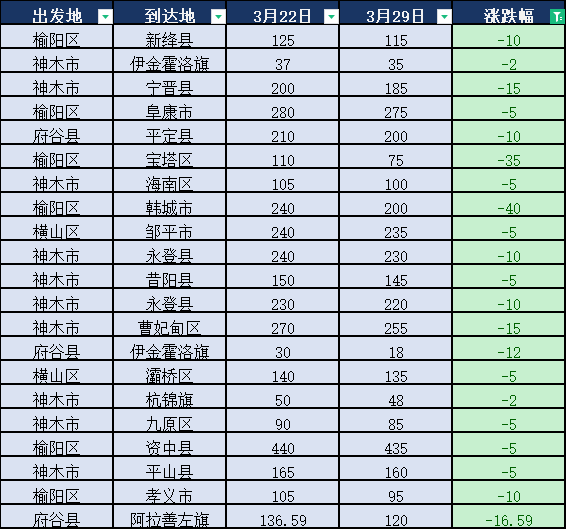 3月下旬榆林煤炭公路運(yùn)費(fèi)參考